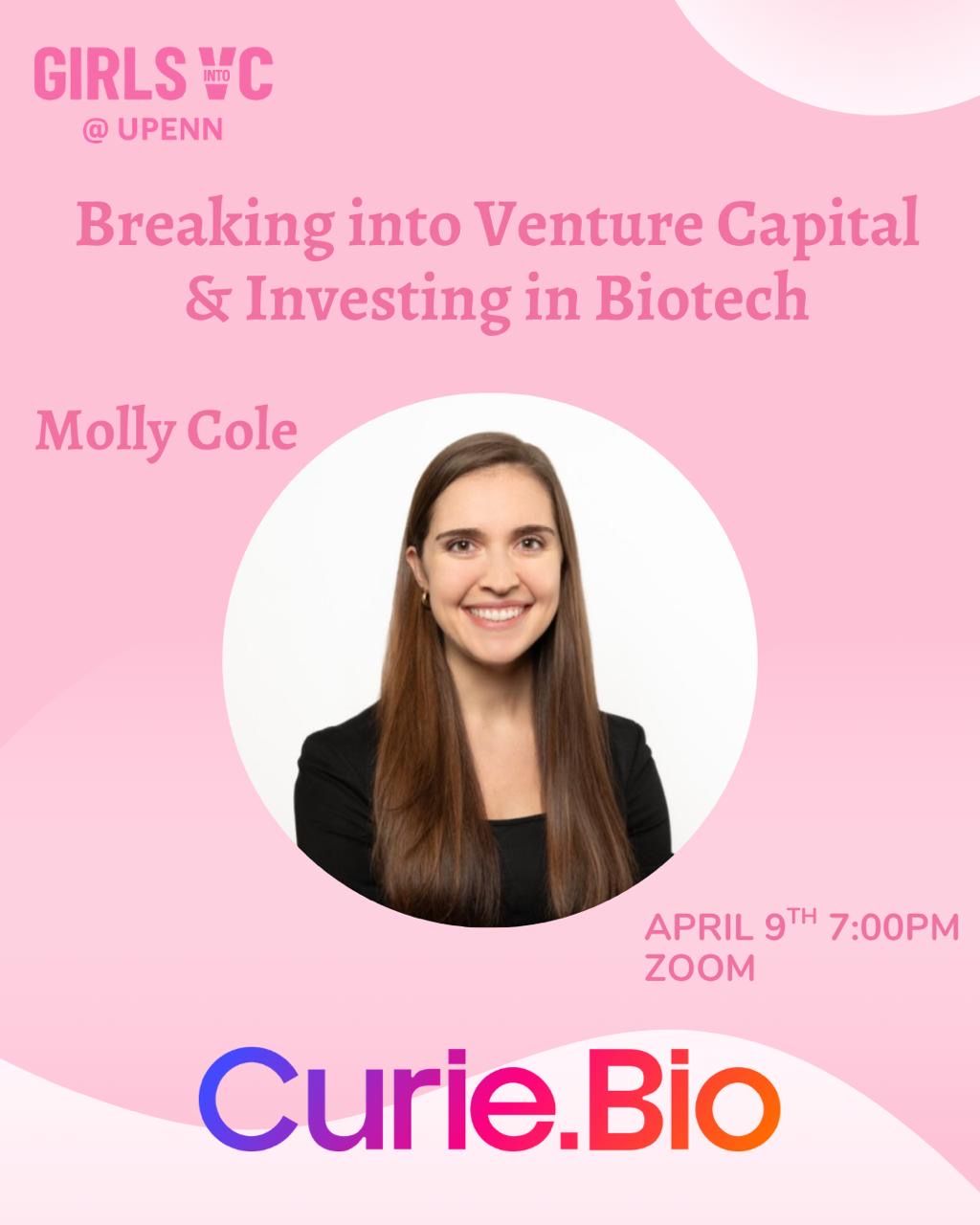 Join GIVC’s Penn Chapter and GIVC for a speaker event with Molly Cole to learn more about investing in biotech and her work at Curie.Bio. Molly will share insights into how investors evaluate biotech companies, what makes the sector uniquely challenging and exciting, and how Curie.Bio approaches building and backing breakthrough science. This conversation will be a great opportunity to better understand the intersection of healthcare, innovation, and venture investing.